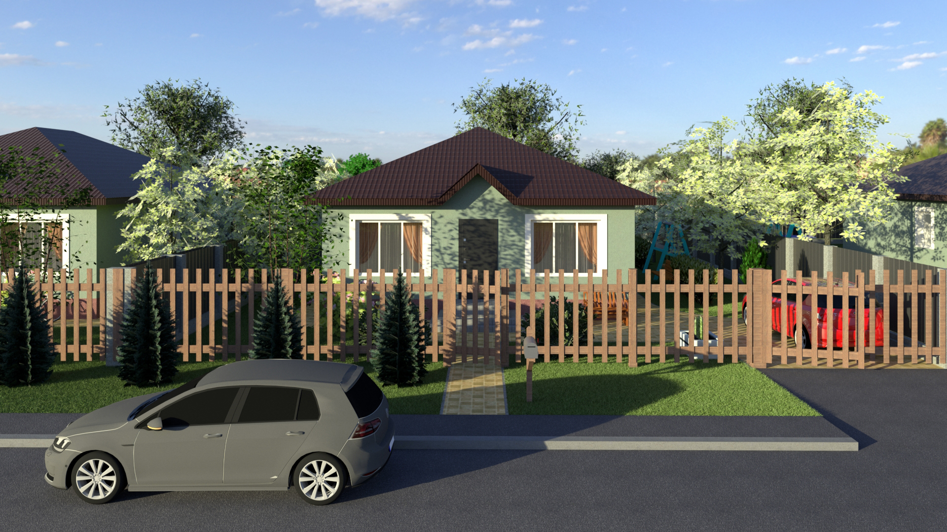 Сельская прописка. Развитая инфраструктура: школа, общественный транспорт, парки, детский сад.